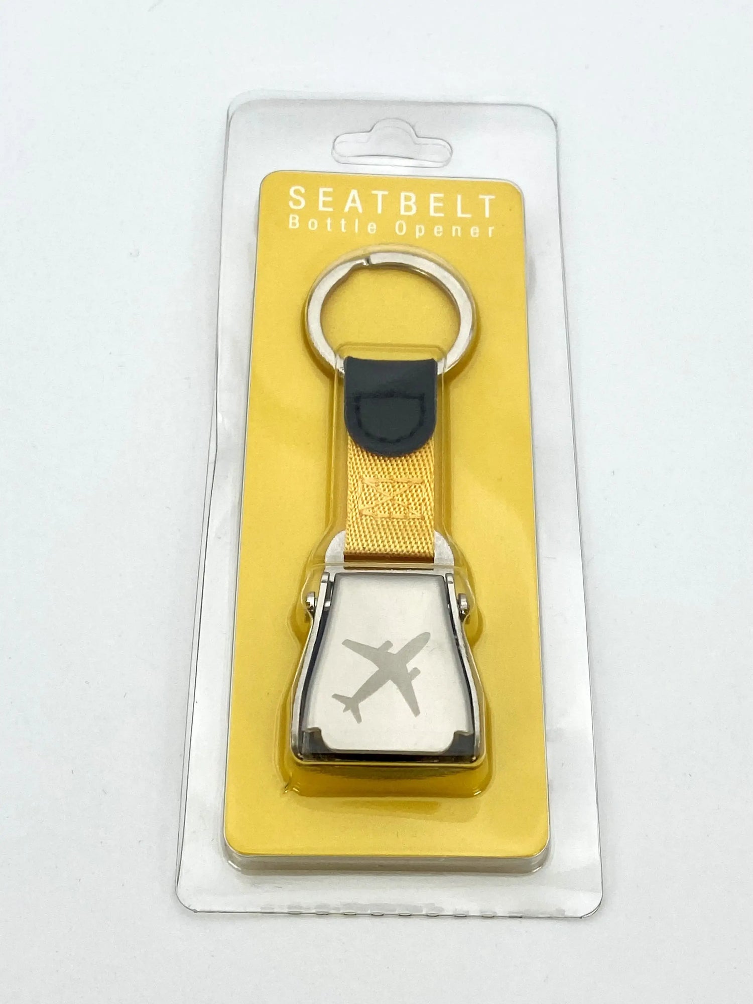 Schlüsselanhänger Flugzeuggurtschnalle mit Flaschenöffner - Gelb ist auf Lager und wird versandt, sobald es wieder verfügbar ist